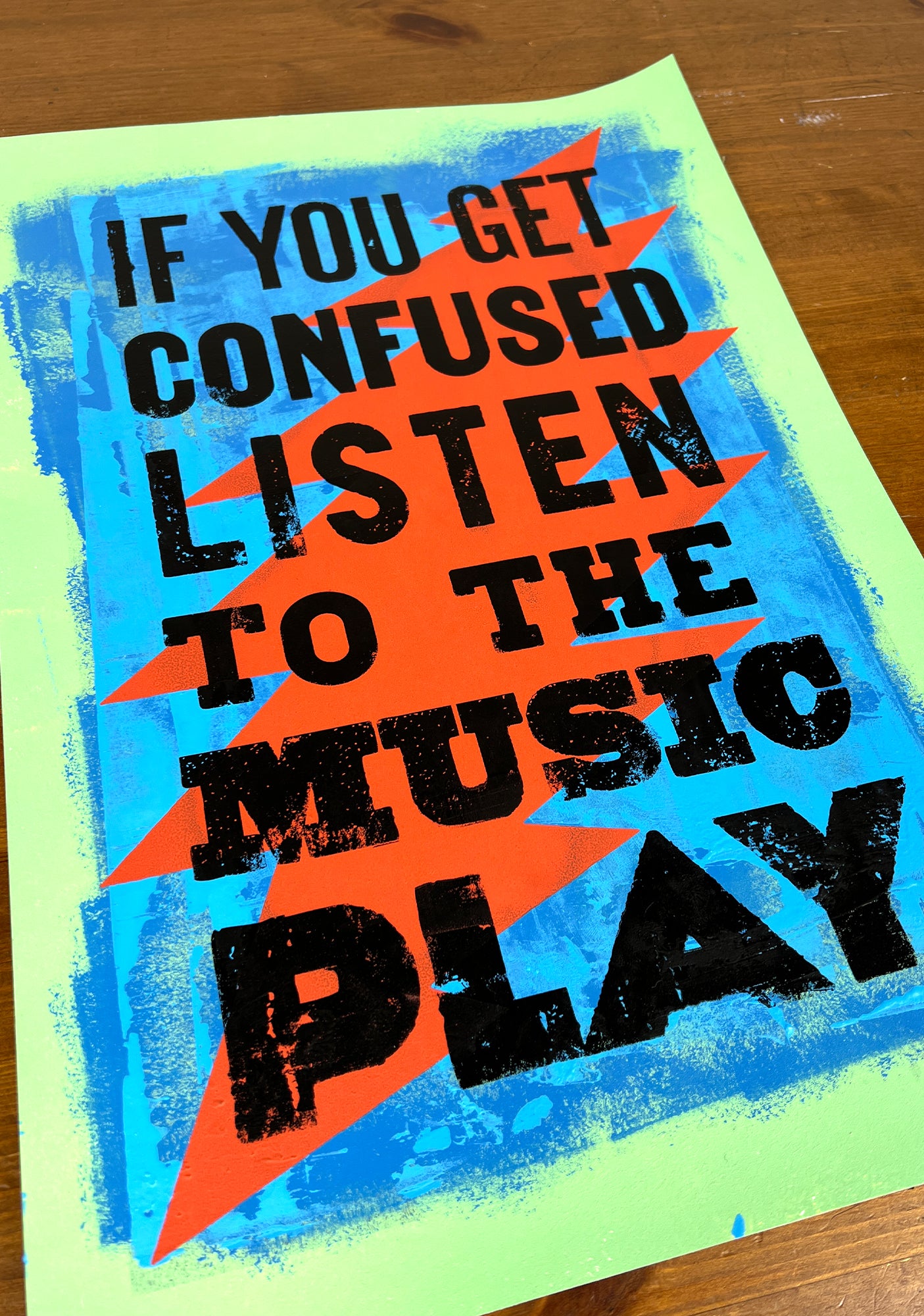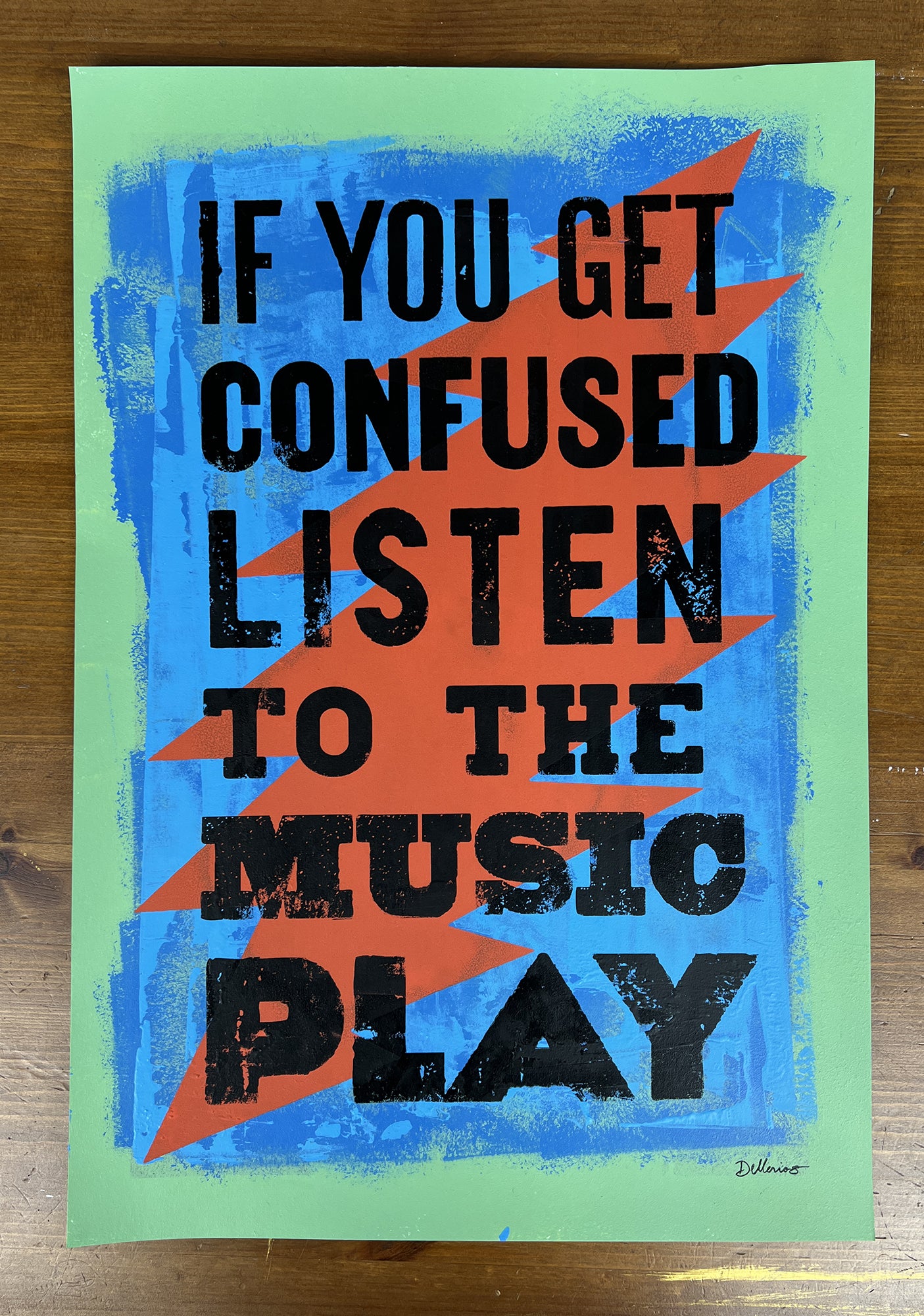 Each piece begins with hand-painted and hand-printed background layers and is finished with a final hand-pulled screen print. No two works are exactly alike.